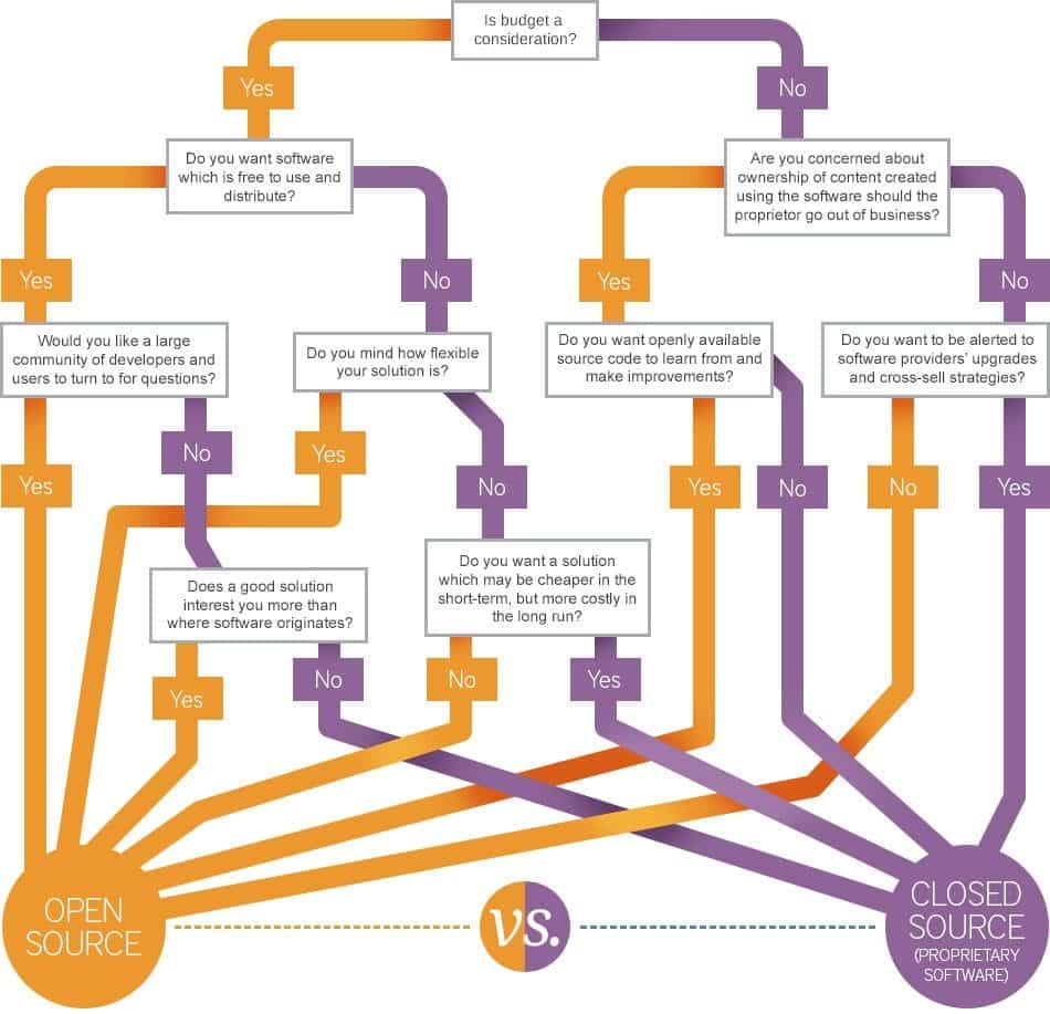 Partendo proprio dal budget, questo schema può aiutarti a decidere meglio tra l’uso di software Open Source e l’uso di software closed source.