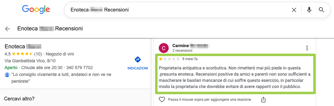 Richiedere la rimozione di una recensione falsa implica l’apertura di un ticket (richiesta di assistenza tecnica), dimostrando che il testo vìola le linee guida della piattaforma, per esempio a causa di un conflitto di interessi o per l’impiego di linguaggio incitante all’odio. Sebbene i tempi di analisi algoritmica e umana possano variare, questa procedura costituisce l’unica via per epurare la scheda dell’attività commerciale locale da dati tossici e inattendibili.